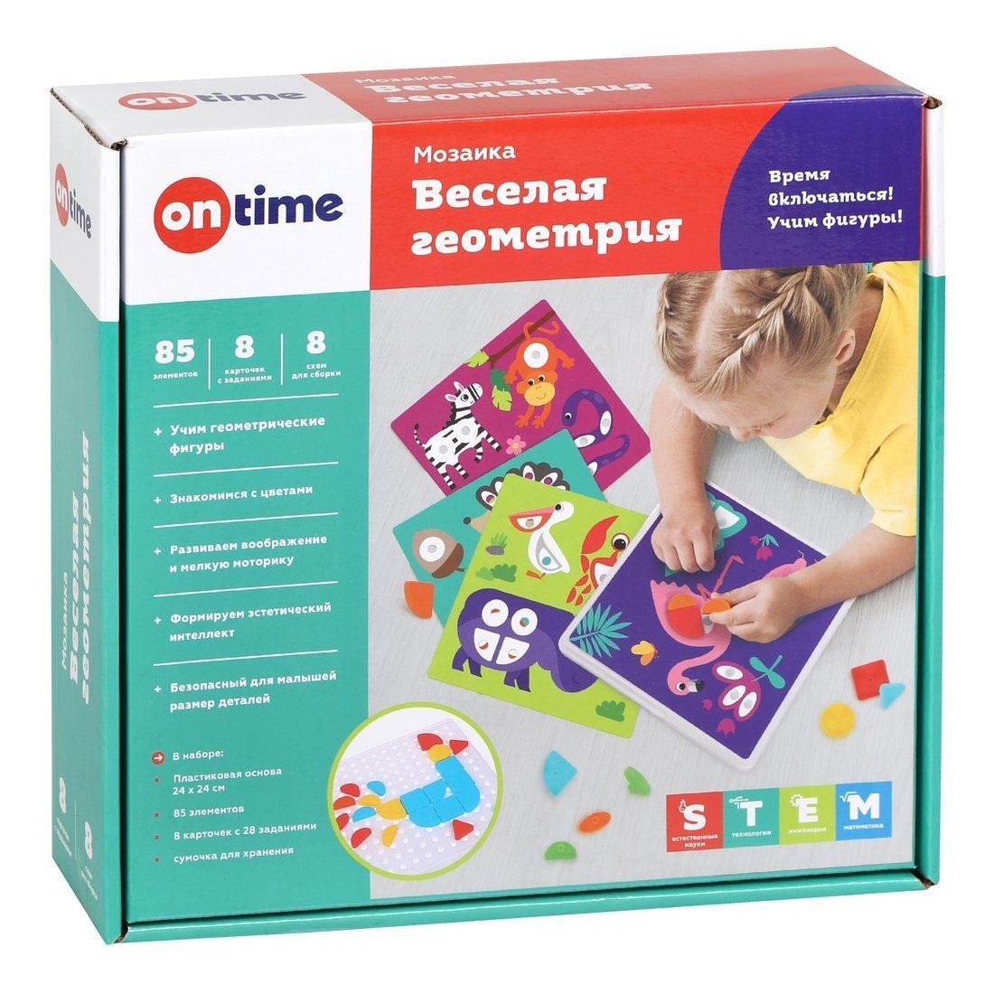 Мозаика «Весёлая геометрия» познакомит ребёнка с цветами, поможет ему выучить геометрические фигуры, развить воображение и мелкую моторику и сформировать эстетический интеллект.