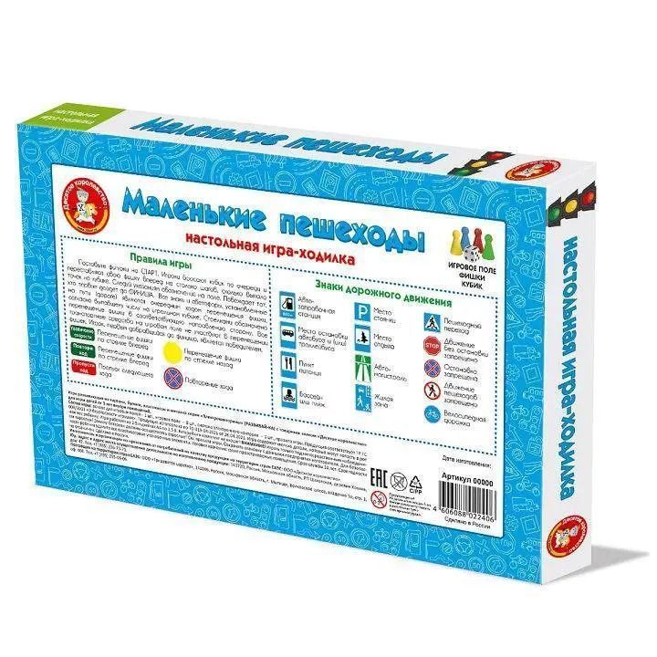 Настольная игра "Маленькие пешеходы" от "Десятого королевства" - это увлекательная и развивающая игра для детей от 3 до 9 лет. Она рассчитана на 2-4 игроков и выполнена в жанре бродилки, что делает ее интересной и захватывающей.