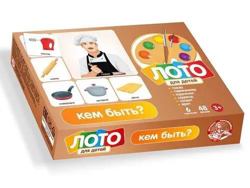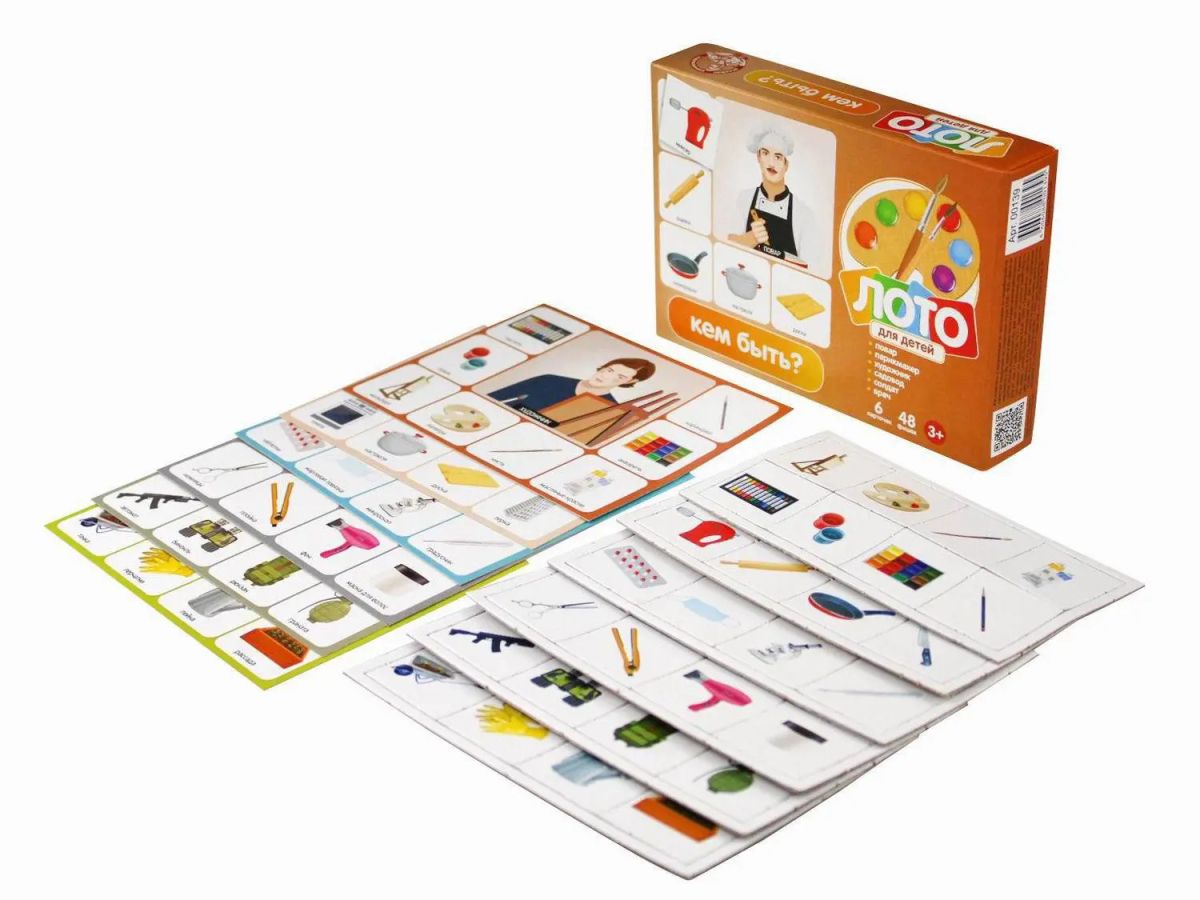 Малое детское развивающее картонное лото «Кем быть?» состоит из: