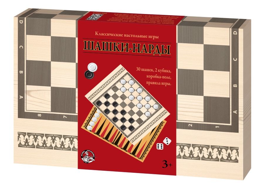 Две классические настольные игры в одной коробке – «Шашки» и «Нарды»!