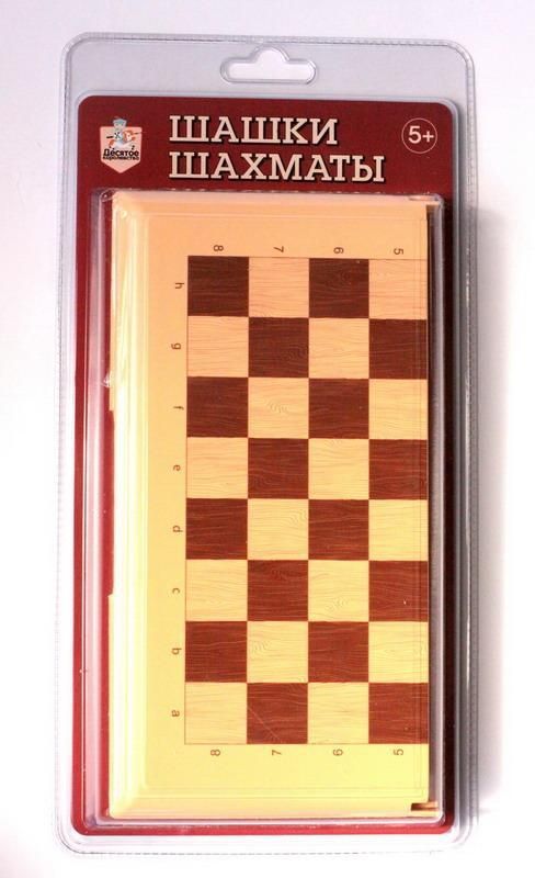 Игра настольная «Шашки шахматы» в бежевой пластиковой коробке (блистер). Состав игры: коробка (игровое поле) – 1 шт. (в сложенном виде – 21 х 11 см, в разложенном – 21 х 21 см), шашки пластиковые – 24 шт. (высота – 4 мм, диаметр – 1,4 см), шахматы пластиковые – 32 шт. (высота до 3,5 см, диаметр – 1,3 см). Материал: пластик. Для детей от 5 лет. Игра в шахматы и шашки развивает образное и логическое мышление, комбинаторику, память, внимательность, терпение.