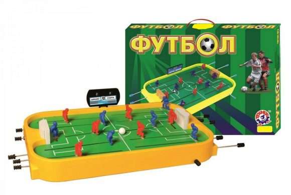 Игровое поле с тягами, фигурки игроков (10 шт.), фигурки вратарей (2 шт.), мяч (2 шт.), ворота (2 шт.), табло.
