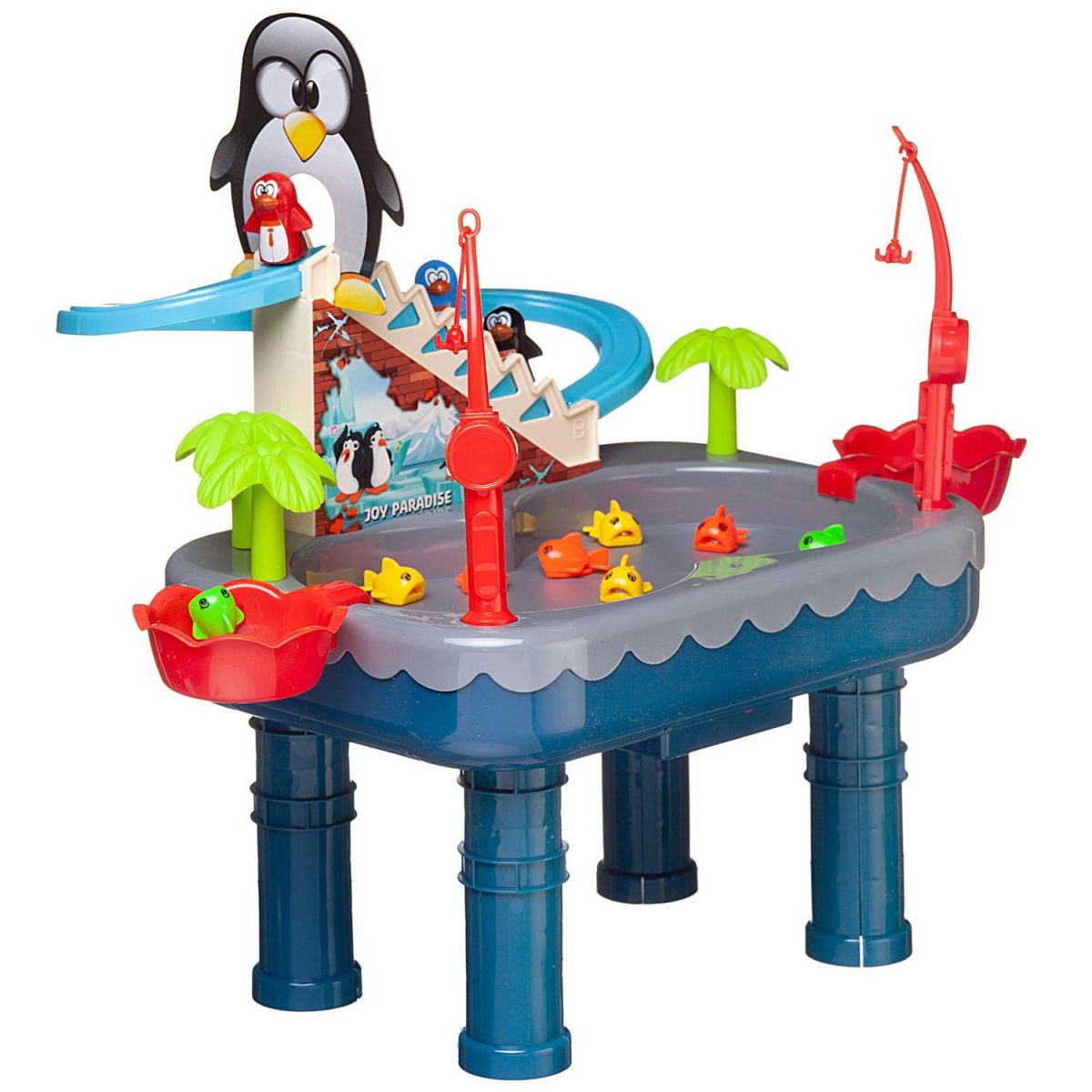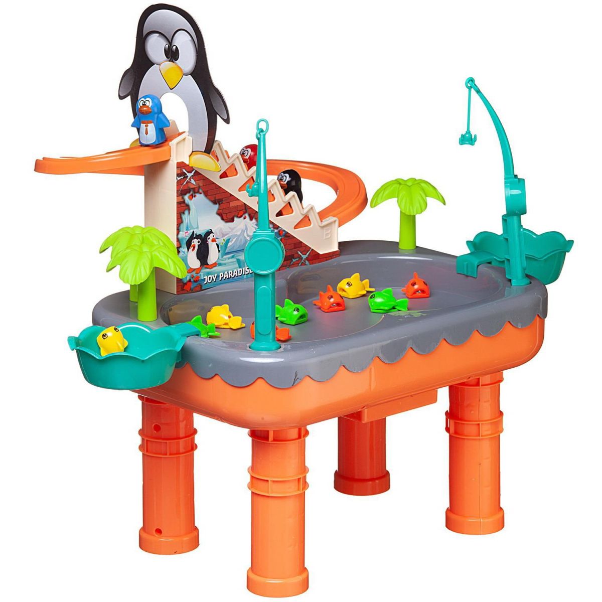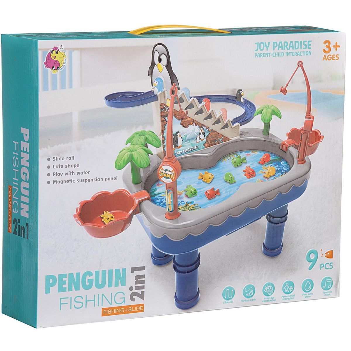 Увлекательная забавная игра "Веселая рыбалка" понравится любому малышу. Ведь так интересно ловить удочкой шустрых рыбок. Можно устроить соревнование, пригласив друга или членов семьи, ведь в комплекте целых две удочки. Дополнительным игровым элементом этой игры будут неутомимые пингвины, которые поднимаются по лестнице в горку, съезжают с нее и опять поднимаются.