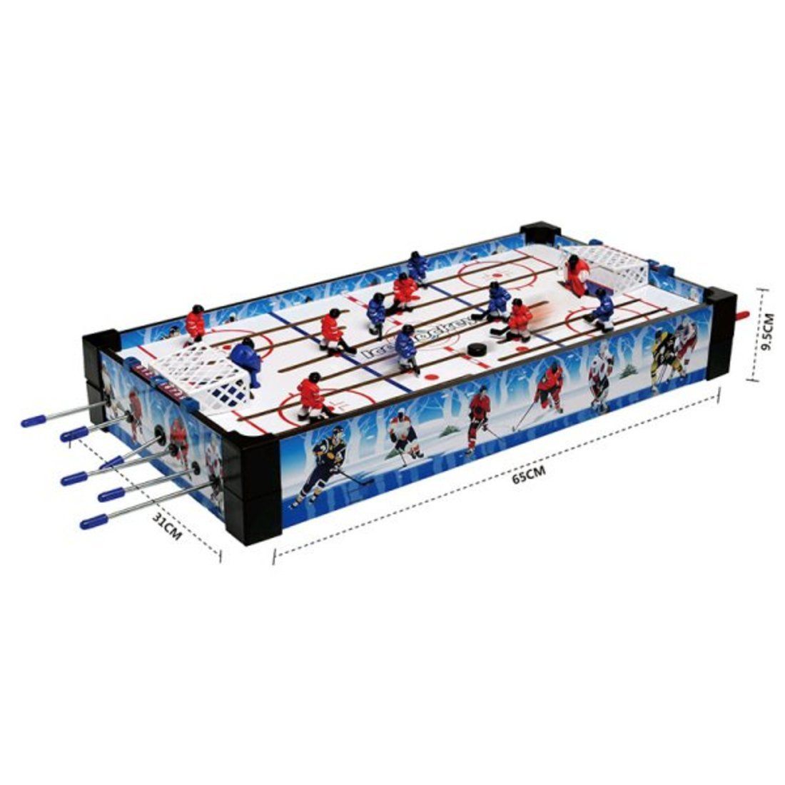 Отличительные особенности игрового набора: механическое табло для ведения счета со стороны каждого участника, комфортное управление всеми хоккеистами при помощи специальных рукояток, цельнолитое игровое поле с прорезями для движения фигур, реалистичный дизайн.