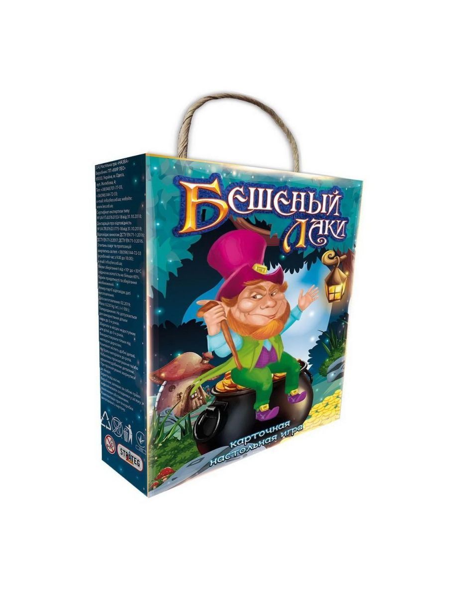 Что первым приходит на ум, когда мы слышим о лепреконах? Золото! Как Вы думаете на что готовы пойти эти маленькие человечки ради него? Ну конечно же на все. И даже если это самая дружная и искренняя компания золотоискателей, может произойти все что угодно: то сапоги новые порвутся, то лопата неожиданно сломается, а то и вообще лес загорится! Во время игры лучше оставить дружеские отношения и не обижаться если друг назовет Вашего леприкона вредителем! И не отчаивайтесь, вероятно он сам вредитель, и хочет таким образом защититься! :) Комплектация игры: 44 карты тропинок, 27 карт действий, 28 карт сокровищ, 7 карт лепрекона Лаки, 4 карты Бешеного Лаки, правила игры