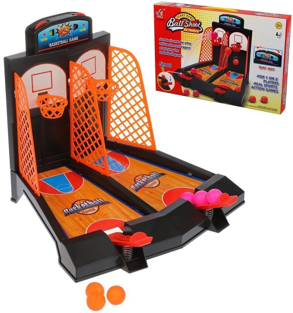 Настольная игра «Баскетбол» обязательно понравится каждому юному спортсмену и поможет ему потренировать ловкость, меткость, сноровку и координацию движений! Игра рассчитана двух игроков, которые смогут устроить настоящие соревнования друг с другом! Набор включает: игровое поле-основание с двумя катапультами размером (ДхШ) 22х27 см, щит высотой 17,5 см, 2 кольца, 3 ограждения и 6 мячей (2 цвета) диаметром 1,5 см.