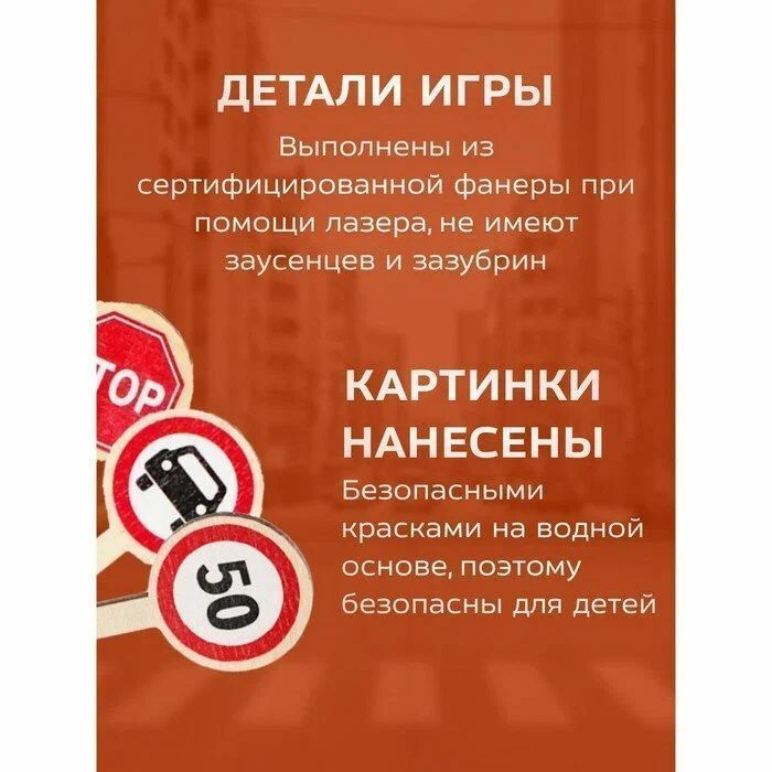 Детали игры выполнены из сертифицированной фанеры при помощи лазера, не имеют заусенцев и зазубрин. Картинки нанесены безопасными красками на водной основе, поэтому безопасны для детей.