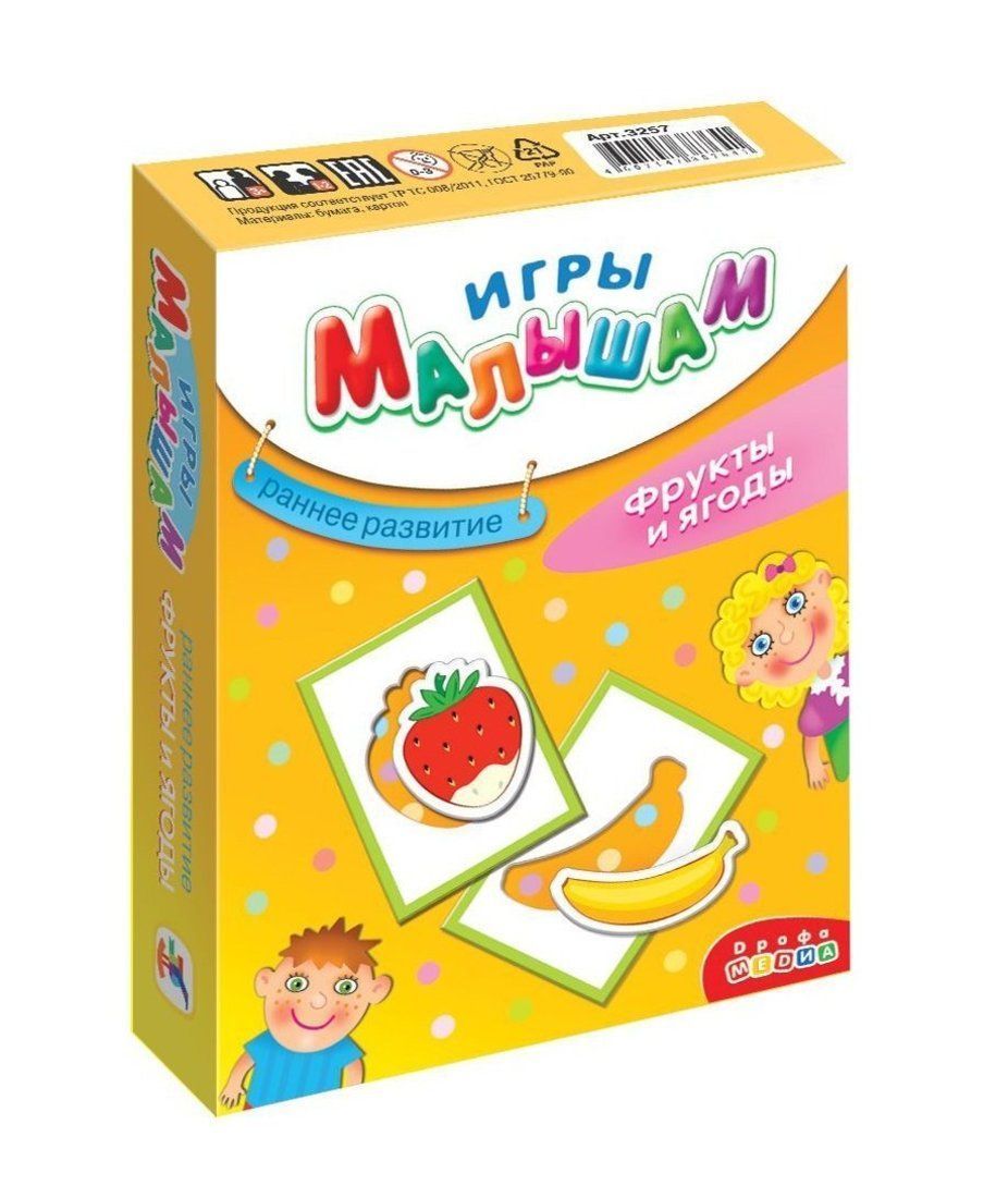 В процессе игры малыш познакомится с некоторыми фруктами и ягодами, научится подбирать их по форме и вставлять в рамки, самостоятельно обводить и дорисовывать, а также использовать для создания сюжетных картинок. Яркие, красочные карточки сделают процесс игры весёлым и доступным для любого ребёнка.