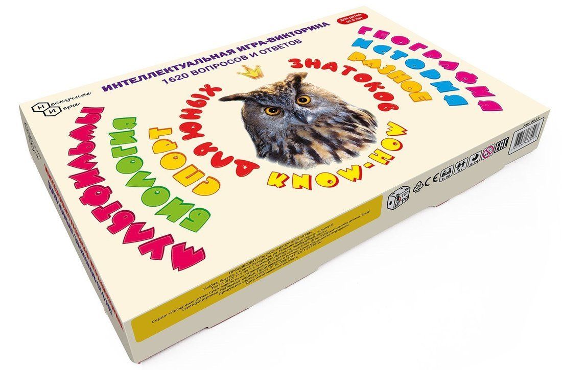 Настольная интеллектуальная игра предназначена для юных знатоков от 6-ти лет. Викторина содержит 1620 вопросов и ответов. В этой игре можно посоревноваться с друзьями, продемонстрировав свои знания в области географии, истории, биологии, спорта, мультфильмов и т.д. Игрокам предлагается 324 карточки с вопросами. В ходе игры участники передвигают кубик по игровому полю и отвечают на вопросы. Каждая категория вопросов имеет свой цвет карточек, соответствующий цвету клеток игрового поля. В игре могут принимать участие от 2 до 6 игроков в личном, и до 36 в командном зачете. Помощь взрослых обязательна, так как вопросы бывают достаточно сложными.