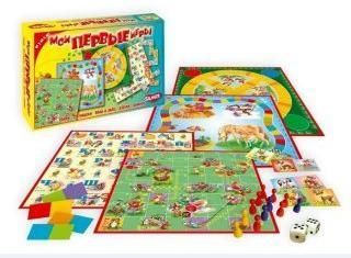 В коллекцию моих первых игр входят простые и увлекательные игры для малышей: Гонки, Пятнашки, Волк и заяц, Домино, Азбука. Игра "Пятнашки" действительно рассчитана на возраст от 3-х лет. Все передвижения в этой игре происходят с помощью цветных карточек, понятных ребенку в этом возрасте. Игра "Азбука" в легкой и непринужденной форме обучит детей алфавиту и основам чтения. "Гонки" являются одним из вариантов известной и всеми любимой игры "Лестницы", которая есть почти в каждой семье. От многих остальных игр ее отличает простота и универсальность, динамика и ясность сюжета, красочность. Играть в нее интересно не только детям, но и взрослым. Игровое поле развивающей игры "Волк и заяц" разбито на четыре сектора. В каждом из них, в зависимости от результатов, выпавших на кубике, игроки будут делать особенные ходы. Развивает у детей внимание, логику, обучает счету. "Домино" и "Домино-цвет" - игры, которые не нуждаются в комментариях.