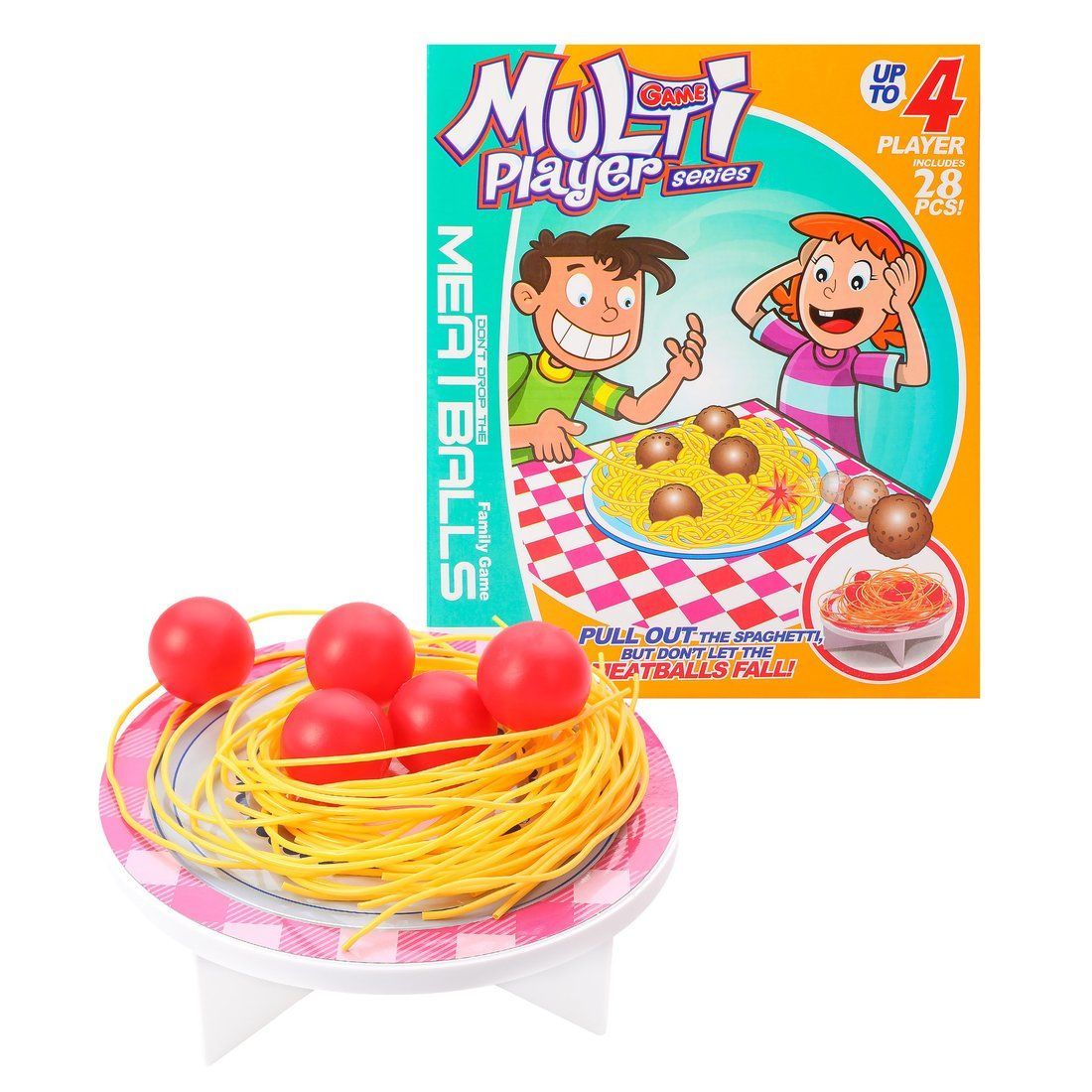 Настольная игра «Паста на тарелке» предназначена для развития у детей ловкости рук и координации движений. Кроме того, настольные игры - это прекрасный повод провести вечер в компании семьи или друзей, который подарит хорошее настроение и детям, и взрослым. Задача каждого игрока заключается в том, чтобы вытащить одной рукой как можно больше вермишели из тарелки. Вытягивать её нужно по одной штуке в соответствии со своей очередью. Во время игры ни спагетти, ни помидоры не должны касаться стола. Количество игроков: 2-4. Диаметр тарелки составляет 17 см. Изделие изготовлено из пластмассы. Рекомендованный возраст: 7 лет +