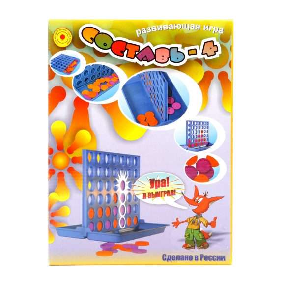 Увлекательная настольная игра «Составь 4» поспособствует развитию у ребёнка способности концентрировать внимание и стратегического мышления. В комплект входят 42 фишки и игровая панель. Игра рассчитана на 2-х игроков, задача каждого из которых - составить ряд из 4-х фишек одного цвета по горизонтали, вертикали или диагонали.