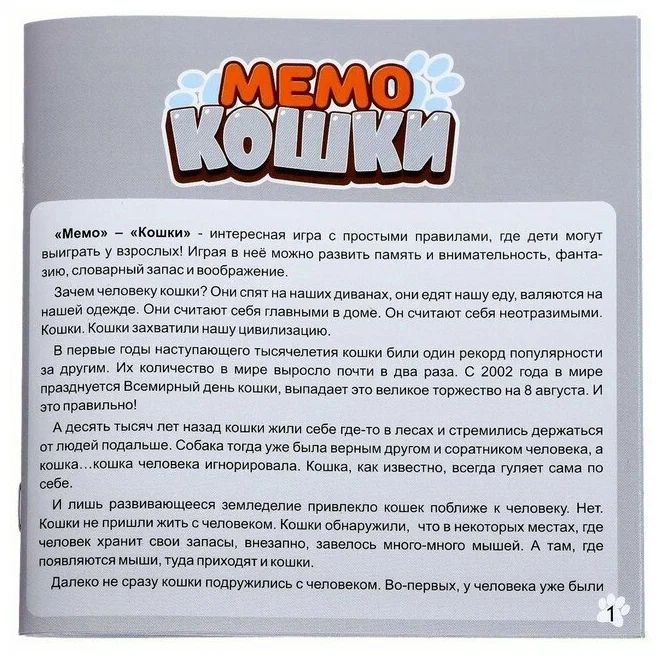 "Мемо Кошки" - это не просто игра, это возможность расширить свой кругозор, развить память и внимание, а также улучшить эрудицию и словарный запас.