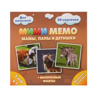 Познавательная настольная игра «Домашние животные» из серии «Ми-Ми-Мемо» поможет ребёнку потренировать визуальную память, расширить кругозор и словарный запас, развить внимательность и умение сопоставлять и сравнивать. С помощью этого набора можно поиграть в 5 разных игр: «Найди пару» (классическое мемо), «Назови всю семью» (игра-викторина), «Кто быстрей» (игра на реакцию и наблюдательность), «Кто здесь был» (игра на знание следов), «Очки и цепочки» (продвинутый уровень на логику). Во время игр ребёнок научится отличать одних животных от других, запомнит, как называются звериные семьи, как «зовут» маму, папу и детёныша. В комплекте - 30 карточек размером 7,5х7,5 см, сделанных из плотного картона, а также буклет-инструкция с описанием семей, забавных фактов и привычек животных. Рекомендованный возраст: 3 года +