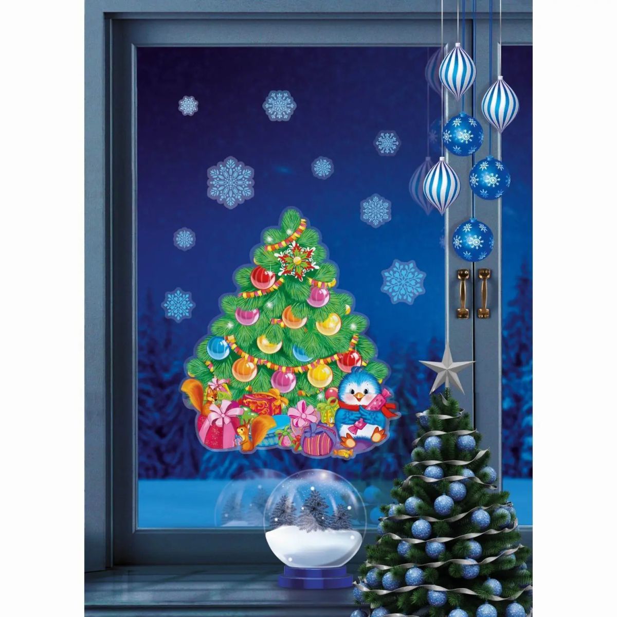 Наклейки новогодние на окна Елочка Новогодняя, А4