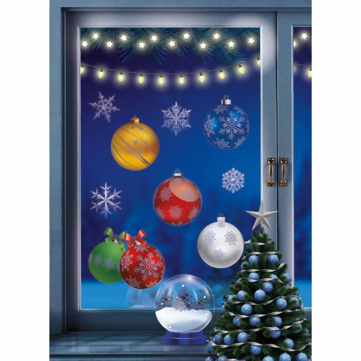 Наклейки новогодние на окна Елочные игрушки, А4