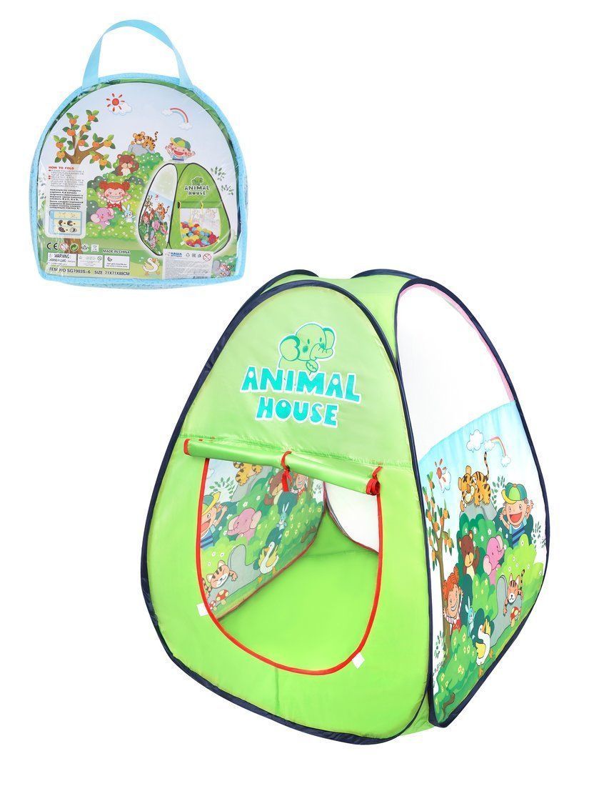 Игровая палатка позволит ребёнку иметь своё собственное место для игр, сказочное и уютное! Там можно играть со своими игрушками, собирать небольшие конструкторы или просто мечтать. Палатка легко складывается и раскладывается, а в сложенном виде не занимает много места. В палатке предусмотрено сетчатая стенка. Залезть внутрь можно через специальную дверцу. Поставляется в удобной для транспортировки и хранения сумочке на молнии.