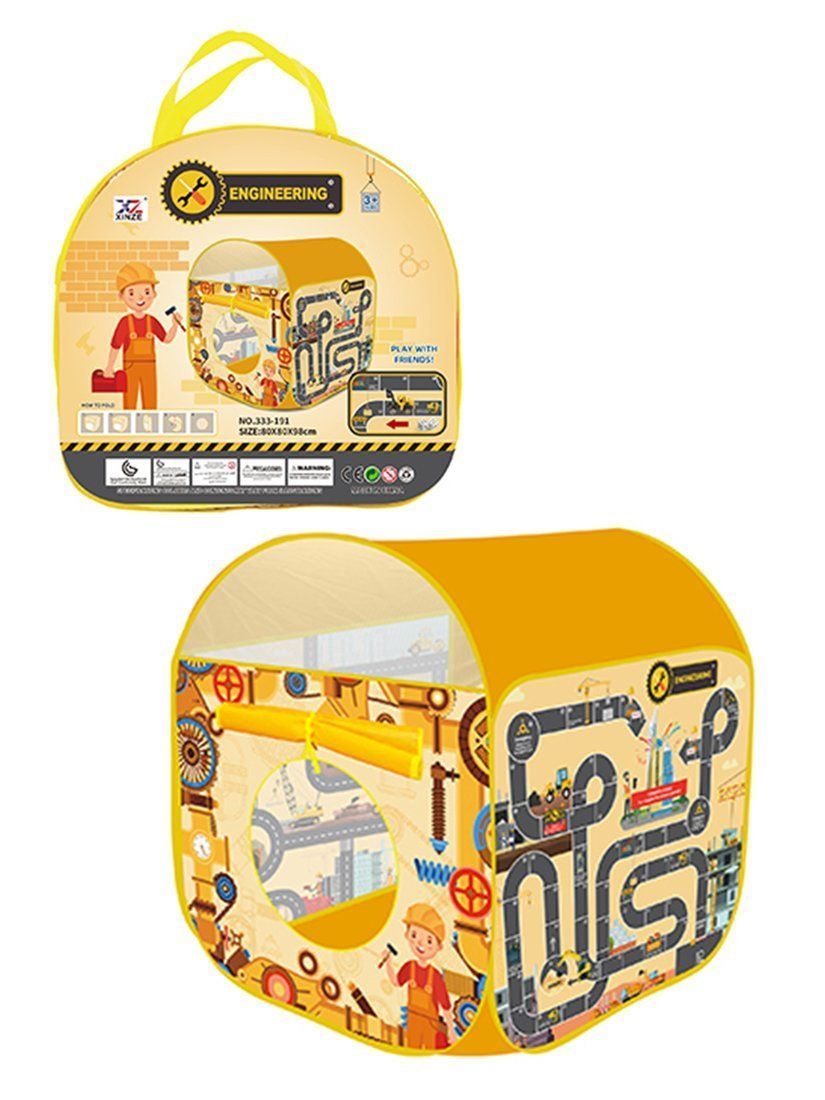 Игровая палатка позволит ребёнку иметь своё собственное место для игр, сказочное и уютное! Там можно играть со своими игрушками, собирать небольшие конструкторы или просто мечтать. Палатка легко складывается и раскладывается, а в сложенном виде не занимает много места. Залезть внутрь можно через специальную дверцу. Поставляется в удобной для транспортировки и хранения сумочке на молнии. Размер палатки в разложенном виде (ДхШхВ) составляет 80х80х98 см. Изделие изготовлено из текстильных материалов с элементами из полимерных материалов. Рекомендованный возраст: 3 года +