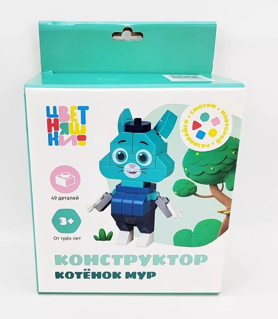 Конструктор блочный On Time Цветняшки Котёнок Мур 49 деталей 45179