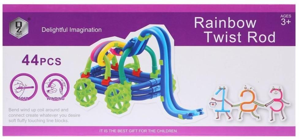 Гибкий конструктор «Горка» включает 44 детали: 3 стержня длиной 30 см, 6 стержней длиной 20 см, 4 стержня длиной 15 см, 2 стержня длиной 10 см, 2 стержня длиной 7 см, 23 соединительных элемента и 4 колёсика. Мягкие стержни можно гнуть в любом направлении и придавать им самые разнообразные формы. Из деталей данного конструктора можно построить радужную горку или то, что подскажет маленькому творцу фантазия.