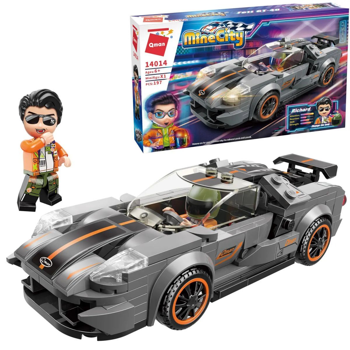 Конструктор QMAN из серии «MineCity» позволит ребенку собственными руками собрать серо-серебристую спортивную машинку. За рулем автопилот Ричард, который мечтает привезти ее к победе в заезде. Простое и надежное соединение деталей разных размеров и форм между собой обеспечат специальные крепления. Во время игры ребенок сможет задействовать свою фантазию и придумать интересные сценарии. В процессе сборки и игры с готовой моделью юный конструктор будет развивать мелкую моторику рук, пространственное мышление, внимательность и усидчивость.