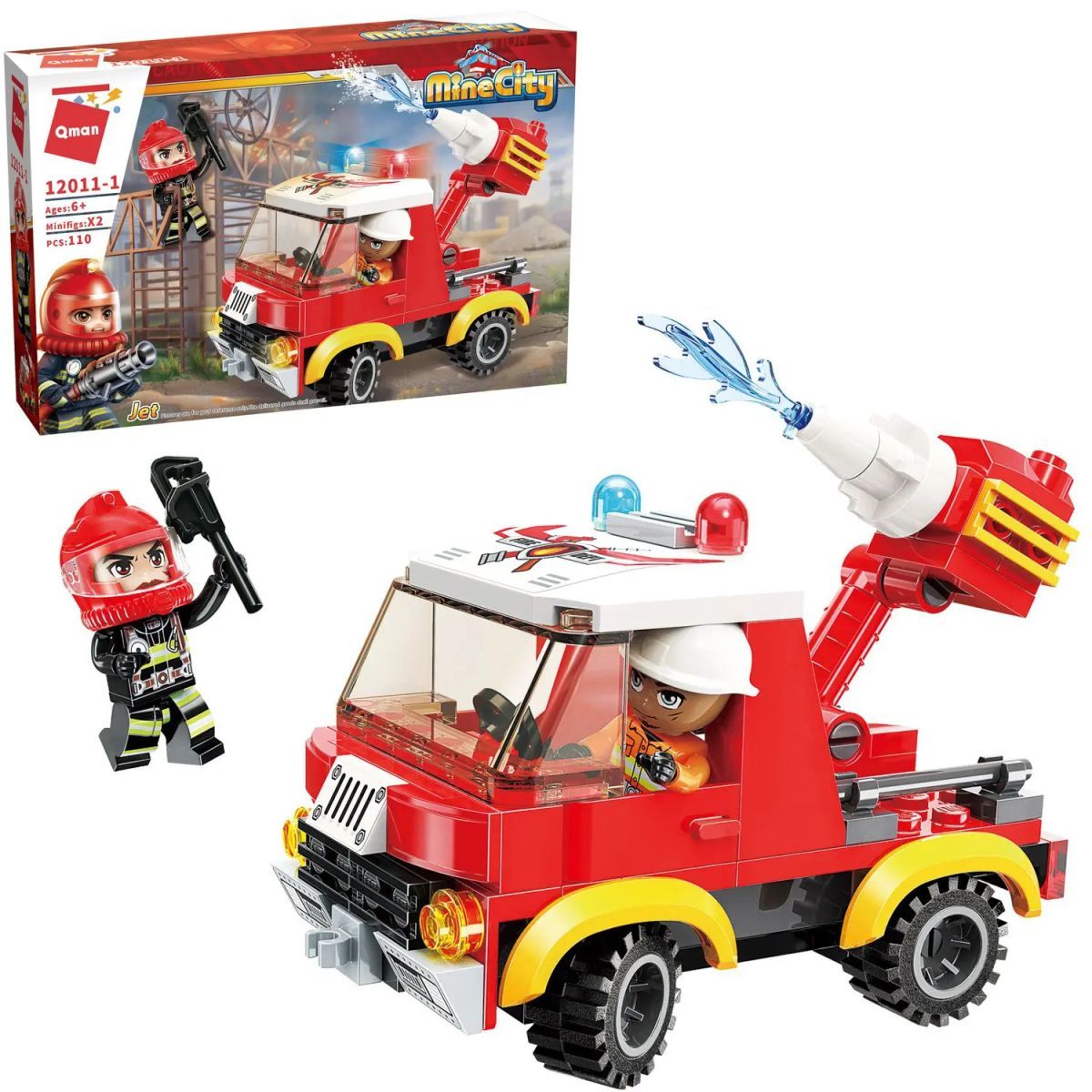 Конструктор QMAN из серии «MineCity» позволит ребенку собственными руками собрать модель пожарной машины с брандспойтом. Дополняют набор 2 фигурки: фигурка пожарного в экипировке, с защитным шлемом на голове и фигурка водителя. Простое и надежное соединение деталей разных размеров и форм между собой обеспечат специальные крепления. Во время игры ребенок сможет задействовать свою фантазию и придумать интересные сценарии. В процессе сборки и игры с готовой моделью юный конструктор будет развивать мелкую моторику рук, пространственное мышление, внимательность и усидчивость.