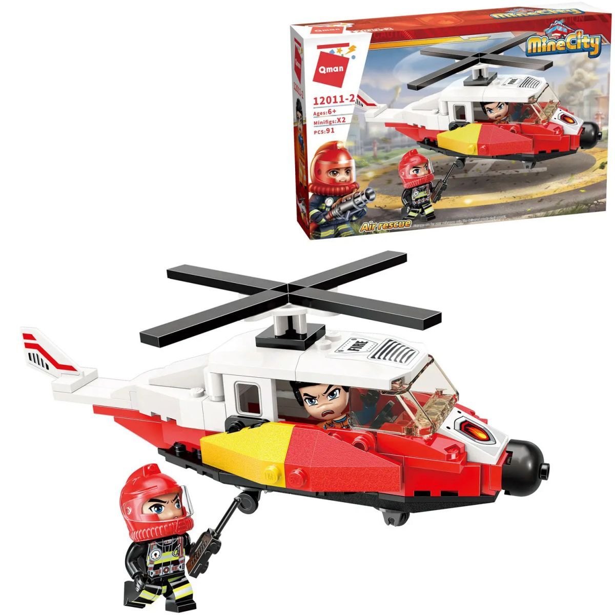 Конструктор Qman серия MineCity Пожарный вертолет 91 деталь