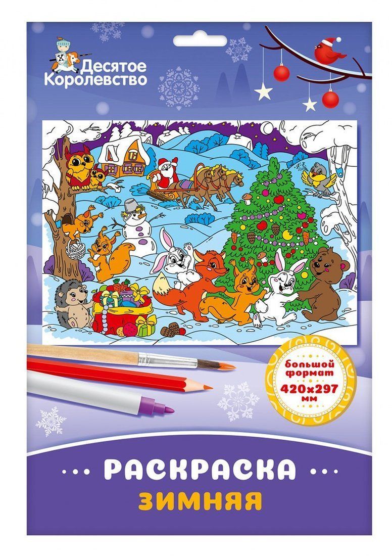 Набор для творчества Раскраска для детей «Зимняя» - это целый мир, рисунок большого формата новогодней тематики для раскрашивания. Четкие контуры рисунка и симпатичные персонажи - раскрашивать будет легко и интересно! Состав: -основа с нанесенными контурами рисунка (420х297 мм) - 1 шт. Раскраска предназначена для детей старше 3 лет. Порядок работы: Разверните рисунок и положите его на столе. Возьмите краски, цветные карандаши или фломастеры. Приступайте к делу! В процессе раскрашивания у ребенка развивается аккуратность, мелкая моторика, цветовое восприятие, память и фантазия.