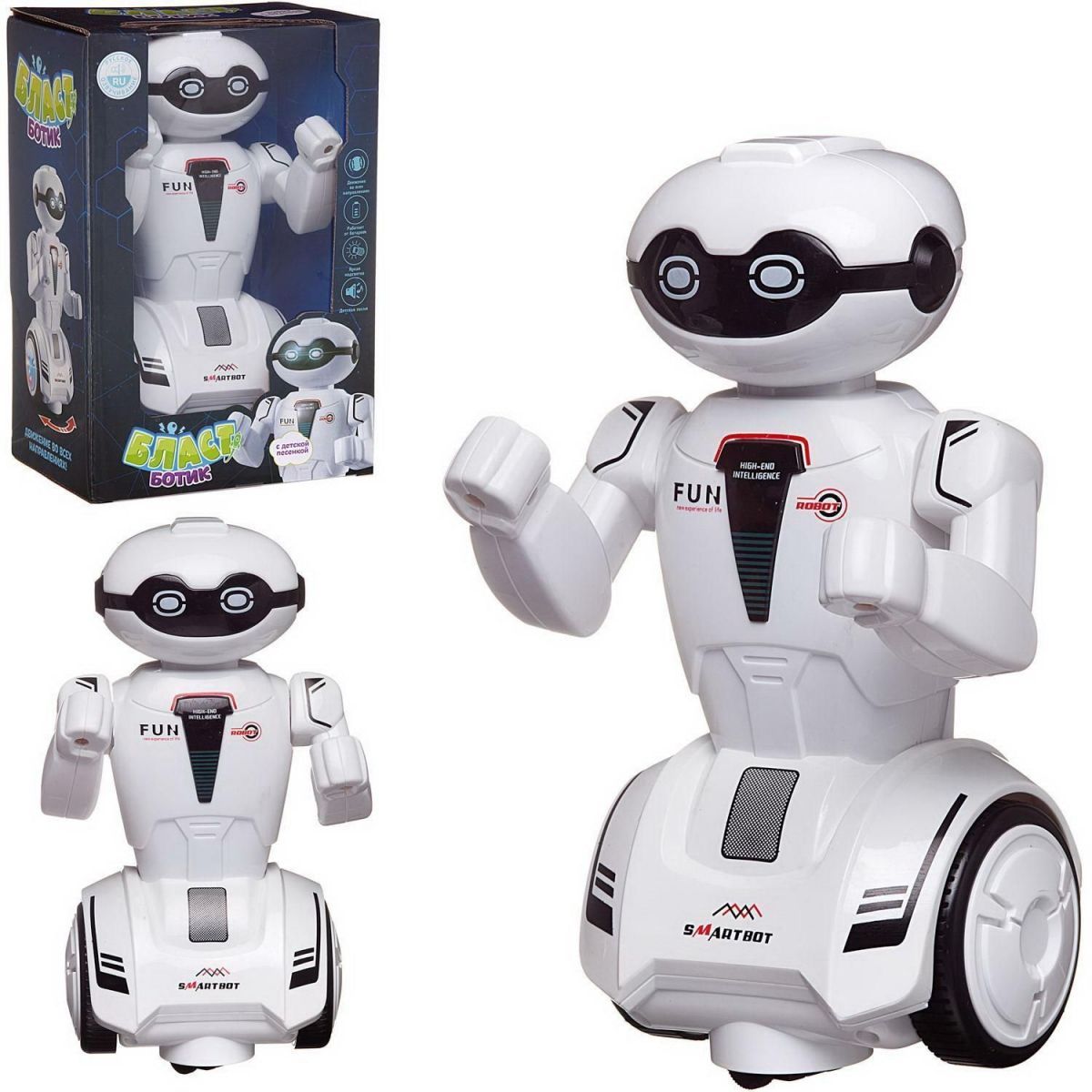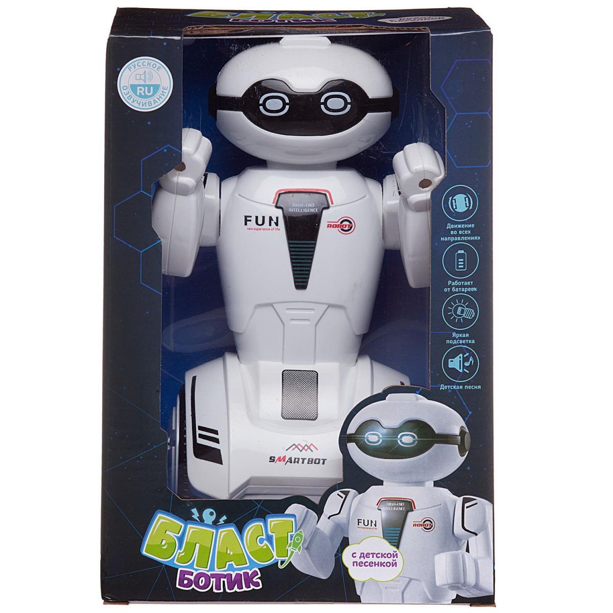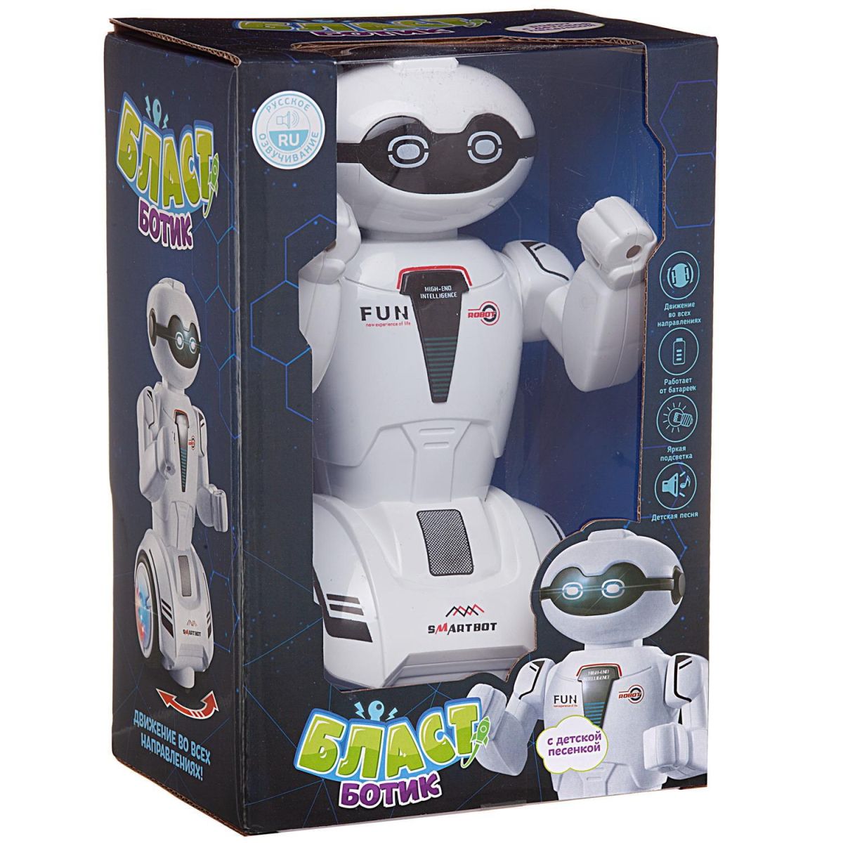 Робот-ботик из серии Бласт станет отличным подарком для любого мальчика. Он имеет оригинальный дизайн, яркую подсветку. Робот может двигаться во всех направлениях, разворачиваясь при встрече с препятствием на пути, его руки подвижны. Робот исполняет веселую песенку на русском языке.