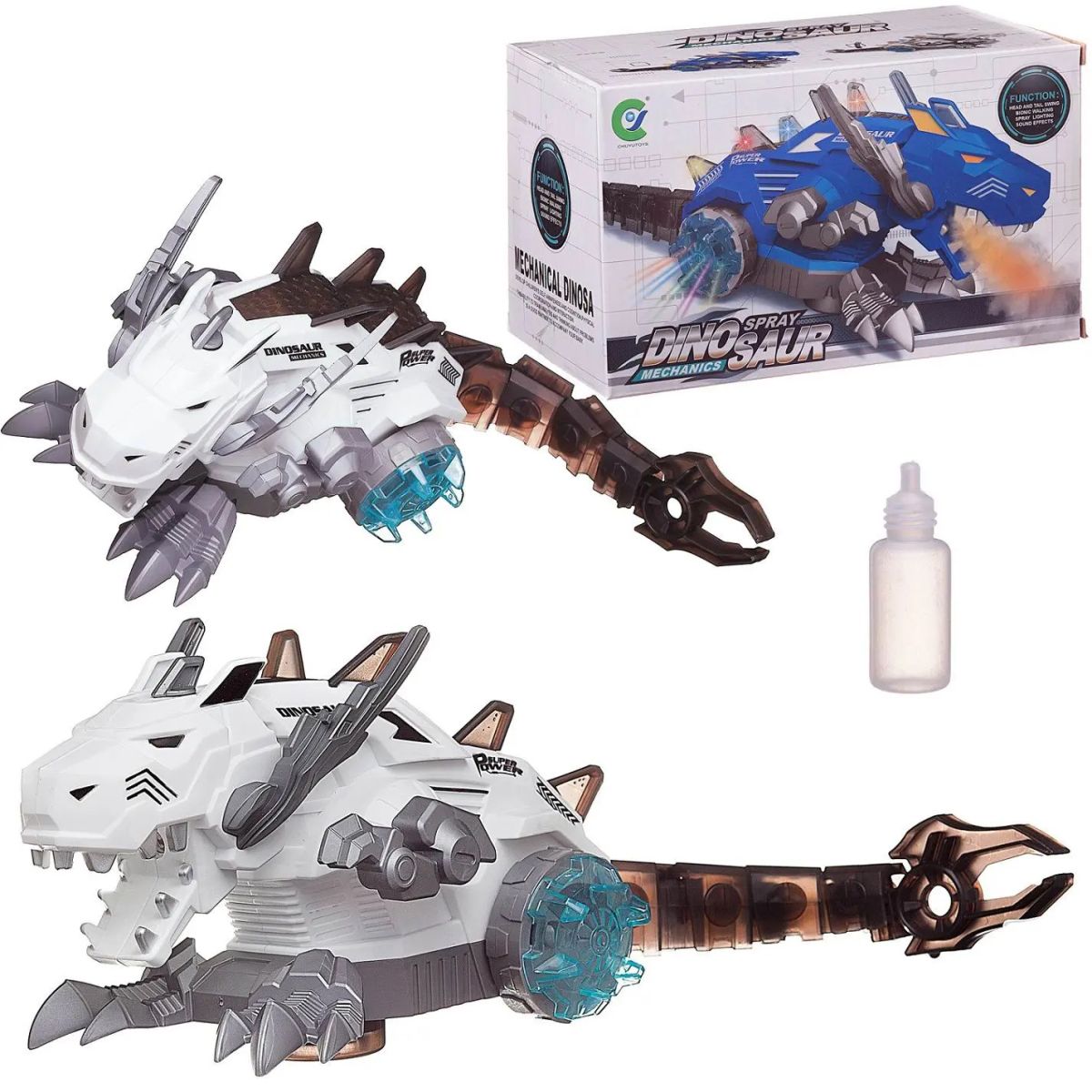 Робот Junfa Динозавр "огнедышащий" с паром, белый, движение звук свет