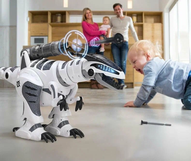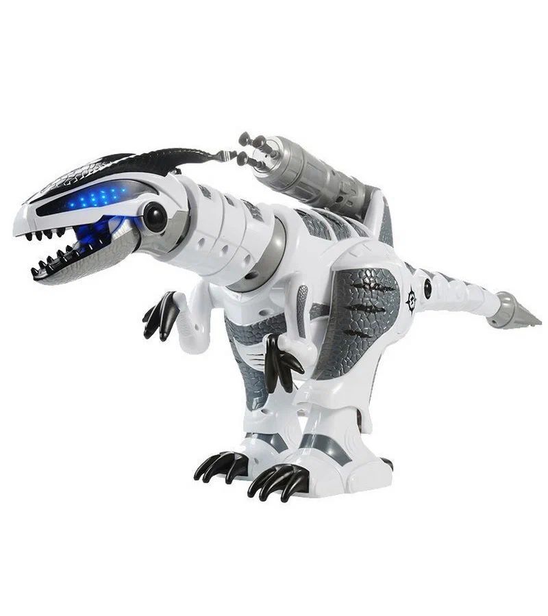 Этот многофункциональный Робот-динозавр "Тирекс" из серии "Пультовод" — желанный подарок для любого ребенка. Робот-динозавр управляется дистанционно при помощи пульта. Сенсорный режим активируется при прикосновении к голове робота и нажатии на соответствующую кнопку на пульте управления. Тирекс способен реалистично двигаться, шагая в любом направлении или скользя вперед или назад, при этом рыча, открывая пасть, шевеля головой, хвостом и передними лапами. Робо-динозавр знает 3 танца. Робота можно запрограммировать и потом наблюдать за тем, как он послушно будет выполнять заданные команды. На его спине размещена ракетная установка, которая стреляет пулями с присосками. Громкость - регулируется. Дино-робот имеет яркую подсветку, реалистичный, привлекательный дизайн, которые сделают игру с ним еще более интересной и увлекательной. Сюжетно-ролевые игры с роботом способствуют развитию воображения, фантазии, образного мышления, расширяют кругозор.