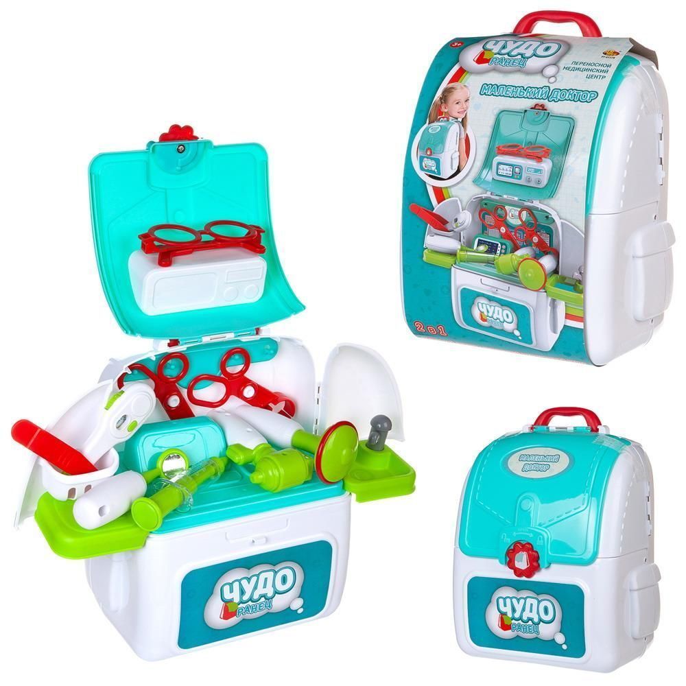 В набор "Маленький доктор" включены предметы для увлекательной игры, в которой ребенок сможет почувствовать себя важным доктором. Многие дети боятся докторов, но теперь каждый сможет попробовать себя в этой роли и убедиться, насколько важна профессия врача. Набор упакован в компактный рюкзачок, в котором его удобно хранить и транспортировать. Упаковка и детали наборы выполнены из качественного прочного пластика привлекательных цветов. С помощью дополнительных элементов набора рюкзачок легко преобразуется в миниатюрный кабинет доктора с необходимыми инструментами и аксессуарами.