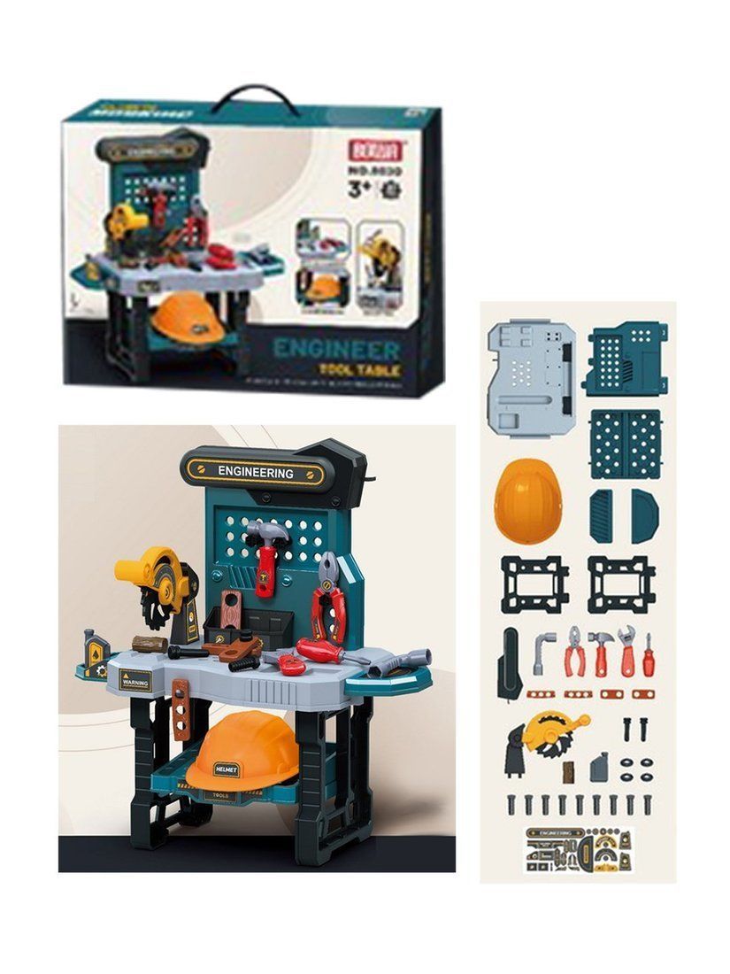 Если маленький мужчина во всем хочет подражать своему папе, то купите мальчишке набор инструментов! Он будет гордиться тем, что самостоятельно прикрутит винт и «забьёт» гвоздь. Набор предназначен для сюжетно-ролевых игр, способствующих развитию ребёнка. В комплект входят 37 предметов. Размер столика в собранном виде (ДхШхВ) составляет: 55х32х61,5 см. Игрушки изготовлены из пластмассы. Рекомендованный возраст: 3 года +