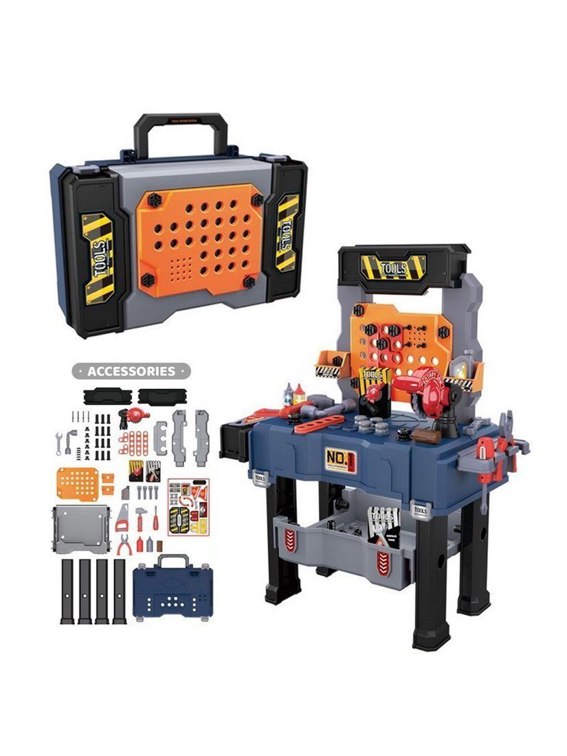 Если маленький мужчина во всем хочет подражать своему папе, то купите мальчишке набор инструментов! Он будет гордиться тем, что самостоятельно прикрутит винт и «забьёт» гвоздь. Набор предназначен для сюжетно-ролевых игр, способствующих развитию ребёнка. В комплект входят 65 предметов. Размер столика в собранном виде (ДхШхВ) составляет: 51х26,5х62,5 см. Игрушки изготовлены из пластмассы. Рекомендованный возраст: 3 года +