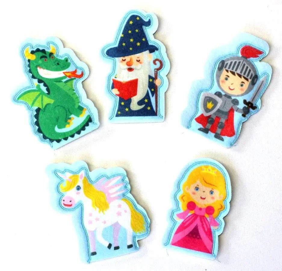 Пальчиковый кукольный театр «Десятое королевство» развивает сенсорно-двигательную функцию, мелкую моторику, красноречие и фантазию. Состав: фетровые пальчиковые куклы – 5 шт. (высота от 10 до 11 см). В набор входят куклы: принцесса, единорог, рыцарь, волшебник и дракон.