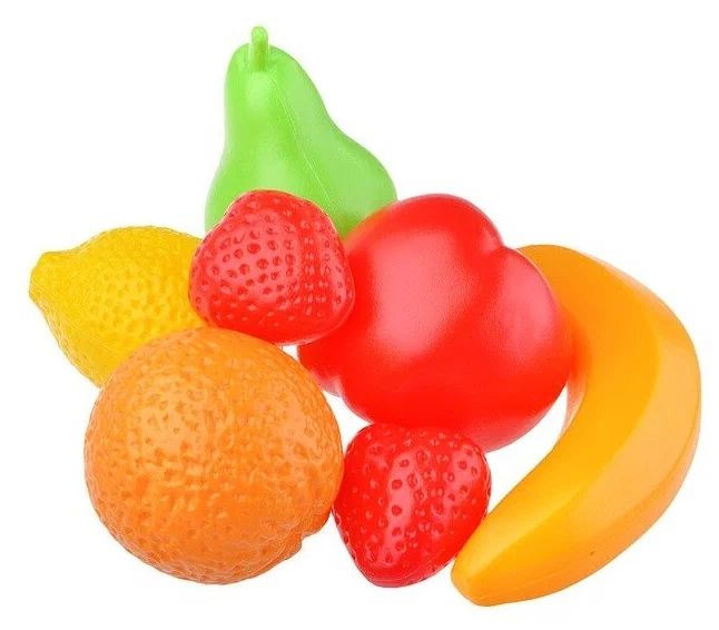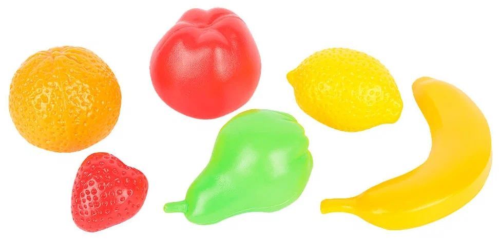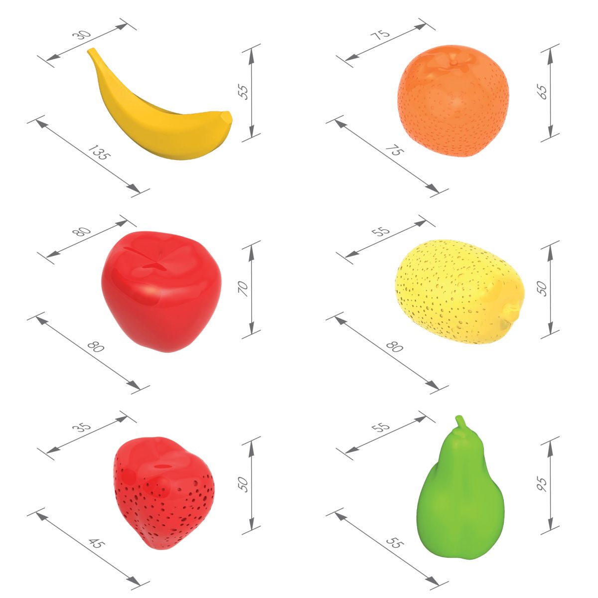 В комплекте: груша, яблоко, лимон, апельсин, банан, ягода клубники.