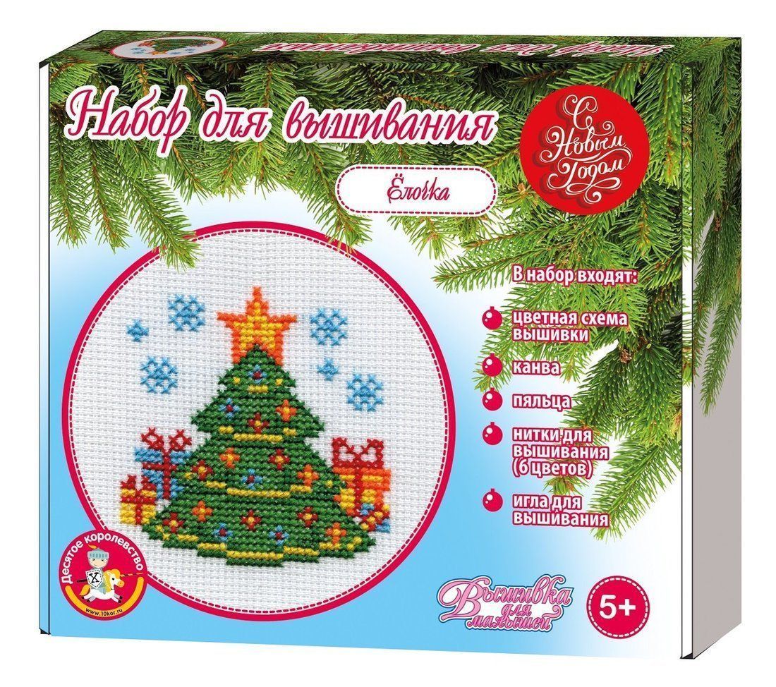 Набор для творчества. Вышивка "Елочка" (с пяльцами). В набор входит: Цветная схема вышивка, канва, нитки для вышивания, игла, пяльцы