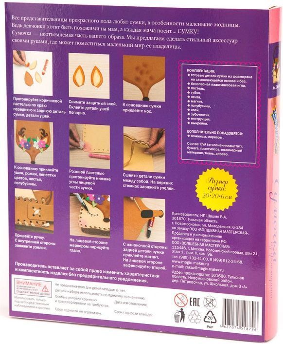 Сумочка из фоамирана "Олененок" - это набор для творчества, который подойдет для детей от 8 лет и старше.