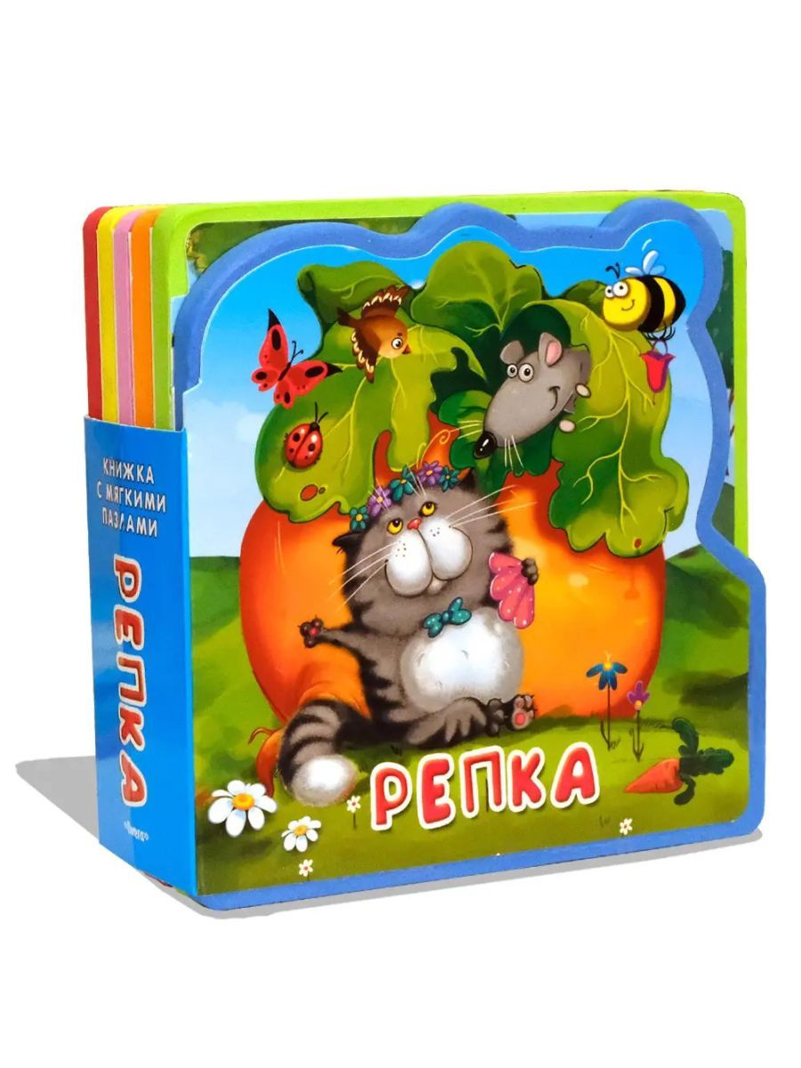 Русская народная сказка Репка в издании с мягкими пазлами поможет взрослым превратить обычное чтение малышу в развивающее и увлекательное занятие. Яркая и привлекательная книжка, небольшого удобного для детских ручек формата, сделана из безопасного мягкого полимера с закруглёнными краями страниц. На каждом развороте внимание ребёнка привлекут забавные и красочные иллюстрации потешек, а мягкие фигурные вкладыши-пазлы станут элементом игры и доставят ему много радости. Издание послужит для всестороннего развития малыша и налаживания с ним эмоционального контакта, поможет ему развивать навыки речи, мелкую моторику, зрительную и слуховую память.