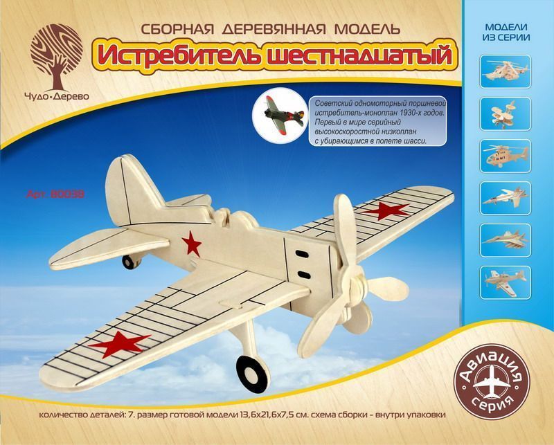 Сборная деревянная модель Чудо-Дерево Авиация Истребитель шестнадцатый