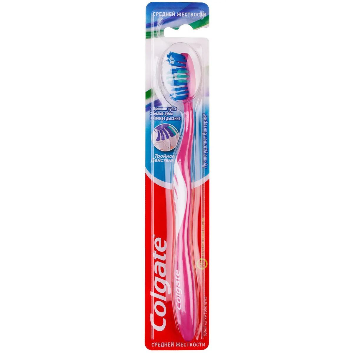 COLGATE Зубная щетка Тройное действие средняя розовая