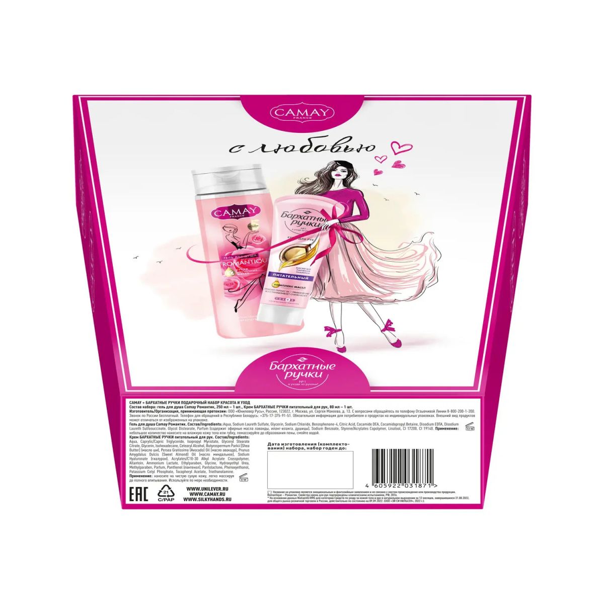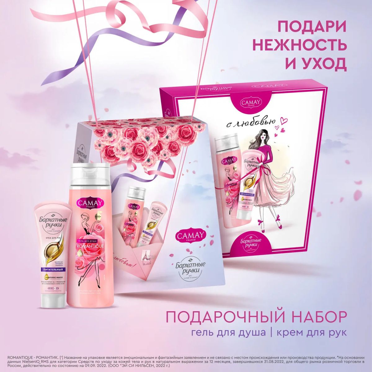 CAMAY Подарочный набор camay+бархатные ручки красота и уход (250+80мл)
