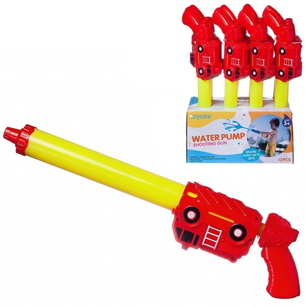 Водное оружие представляет собой замечательную игрушку в виде водяной помпы, с которой ребята будут весело проводить время в жаркий летний день. Оружие нужно наполнить водой и устроить резвую беготню с друзьями, пуская друг в друга водные струи. Рукоятка водной помпы оформлена в виде пожарной машины.