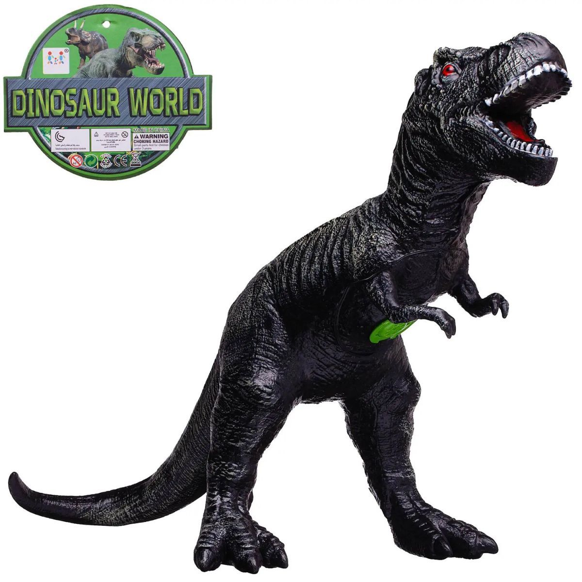 Реалистичная, красочная гигантская фигурка динозавра выполнена из мягкого, приятного на ощупь полимерного материала, слегка сжимается при сжатии. Динозавр рычит при нажатии на специальную кнопку в нижней части корпуса. Внушительный размер, красочный, детализированный окрас фигурки сделают игру с таким динозавром интересной и увлекательной.