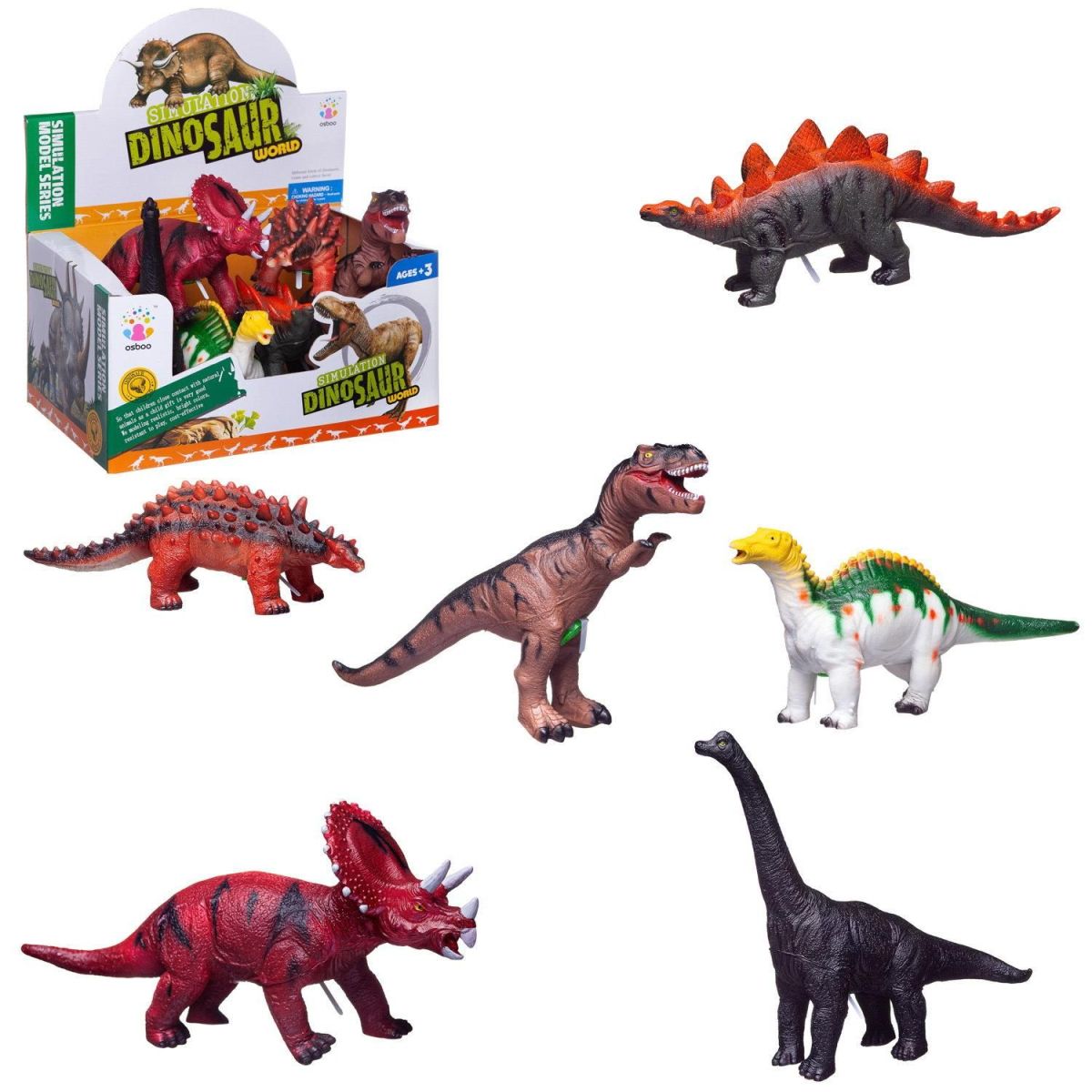 В коллекции представлены фигурки 6 различных динозавров. Фигурка выполнена из мягкого, приятного на ощупь полимерного материала, слегка сжимается при сжатии. Приблизительные параметры фигурки динозавра: высота динозавра 24см, длина от головы до кончика хвоста 38см, ширина от лап до хвоста 9см. Размеры динозавров в коллекции могут незначительно различаться в зависимости от его вида. Требуемый элемент питания: 3 батарейки AG13 (в комплекте).