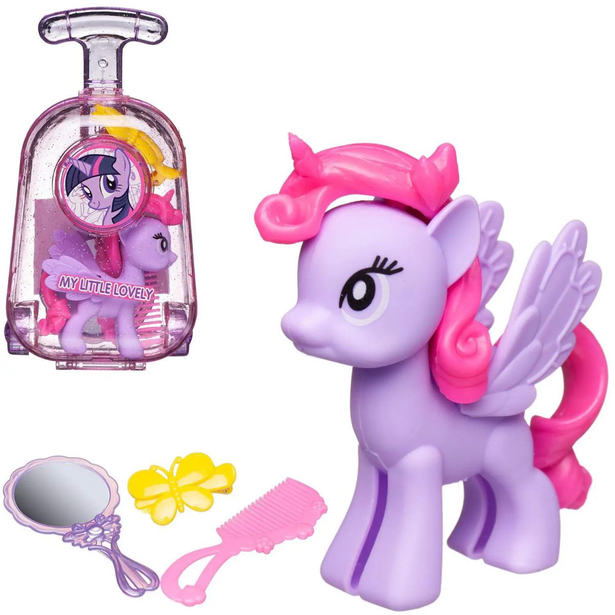 В состав набора входят: пони, чемоданчик, зеркальце, расческа, заколка.