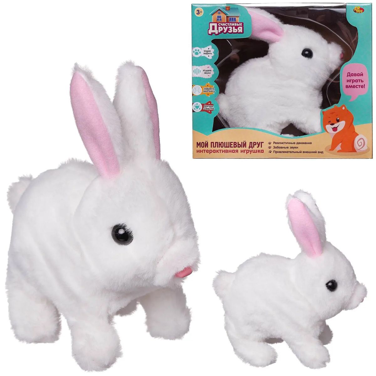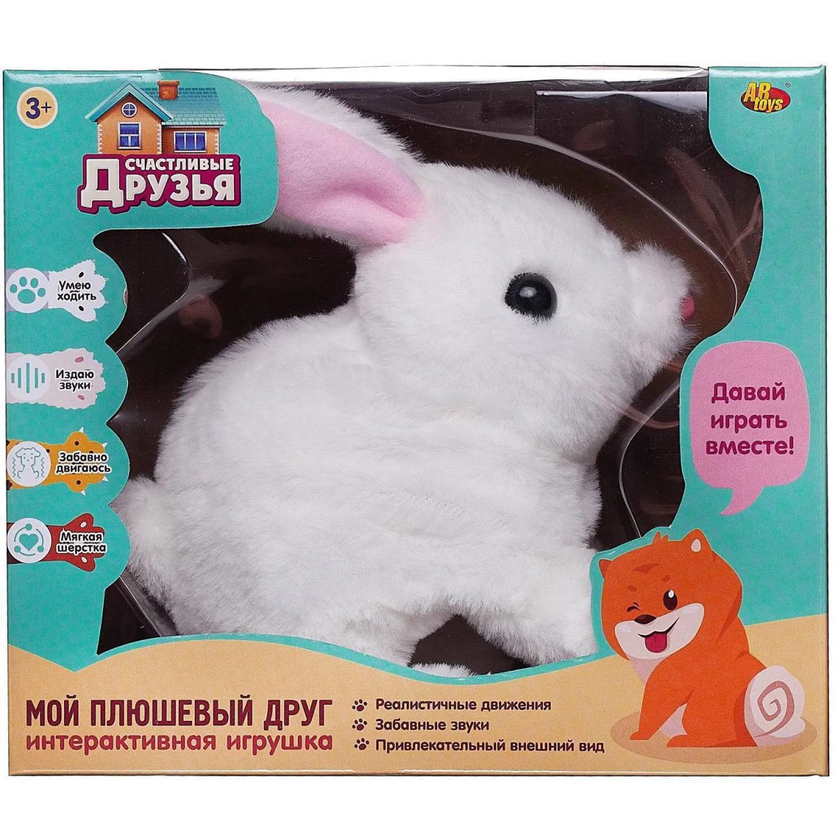 Невероятно очаровательного белого кролика из серии «Счастливые друзья» от бренда Abtoys будет рад получить в подарок каждый ребенок. Кролик интерактивный, умеет прыгать вперед, а потом во время остановки совершенно умилительно шевелит носиком и ушками, издает забавные звуки. Мягкая шерстка кролика очень густая, с ней ему будут не страшны даже самые лютые морозы. Его круглые глазки – черного цвета, длинные ушки- бело-розовые, носик - розовый. Милая игрушка подарит малышу массу положительных эмоций и поможет научиться заботиться о домашнем любимце.