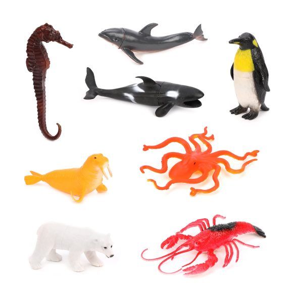 Реалистично выполненные фигурки морских животных познакомят ребёнка с удивительным миром фауны. Играя с небольшими фигурками, дети развивают мелкую моторику рук, сенсорное восприятие, знакомятся с различными формами и цветами. Игрушки прекрасно подойдут для сюжетно-ролевых игр.