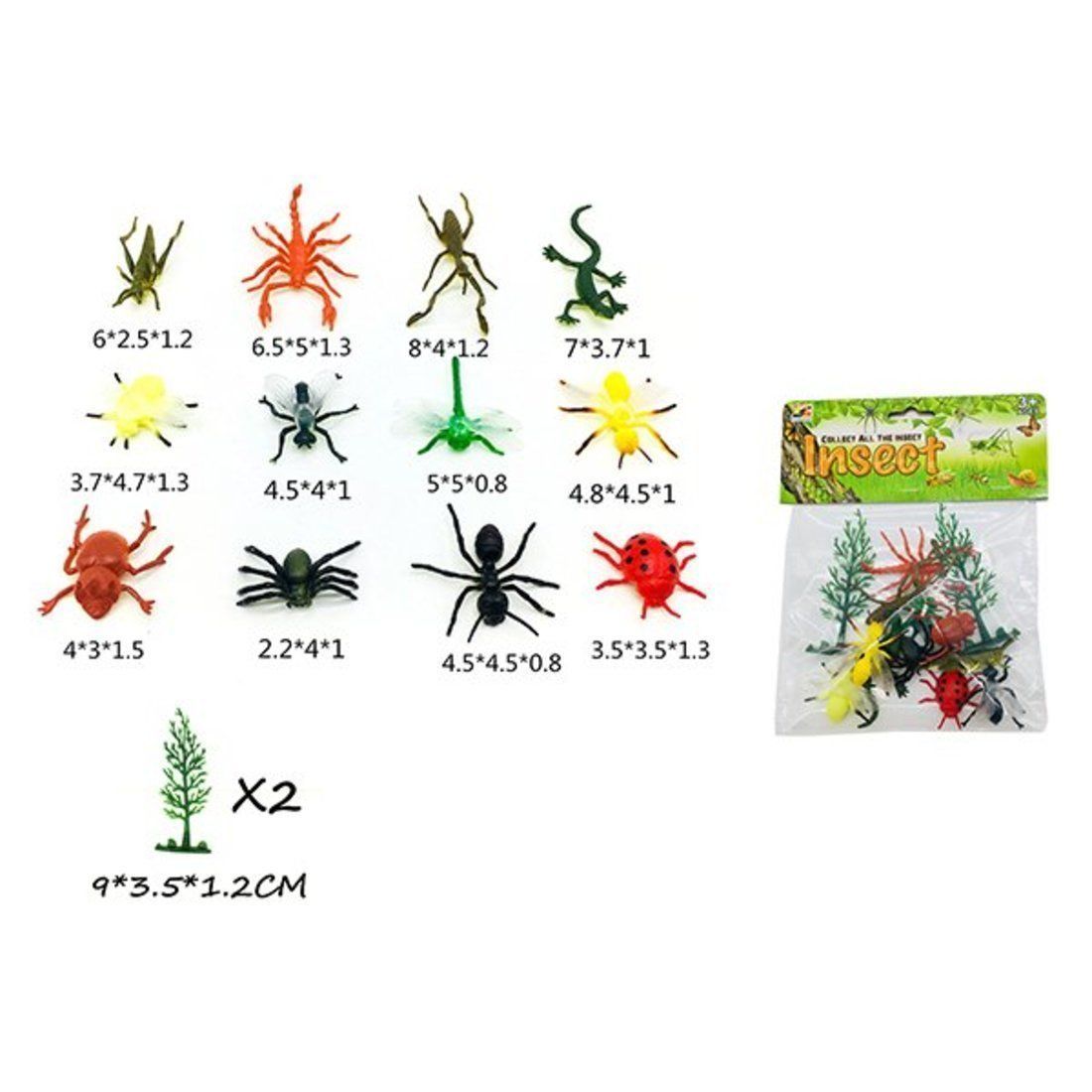 В комплекте: 12 игрушек насекомых и 2 игрушечных элемента растительного мира.