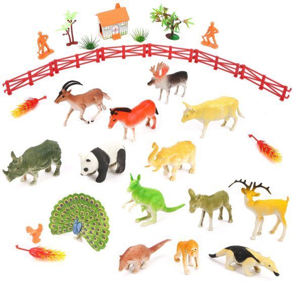 Этот интересный игровой набор познакомит ребёнка с удивительным миром живой природы. В комплекте - 15 высоко детализированных фигурок животных разного вида, 2 фигурки фермеров, игровое поле и аксессуары в виде забора, домика, деревьев и травы. Игра с небольшими фигурками стимулирует развитие мелкой моторики рук, фантазии и воображения.